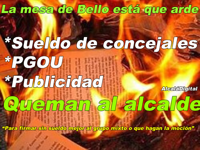 AlcaláDigital.- El alcalde de Alcalá de Henares, (205.000 habitantes) Javier Bello, está dejando los tema más calientes de esta legislatura encima de su mesa, como son el sueldo de concejales, el desarrollo del plan General de Ordenación Urbana, y el tema de la publicidad institucional, que fue aprobado por mayoría de la corporación municipal en el pleno de diciembre de 2013.