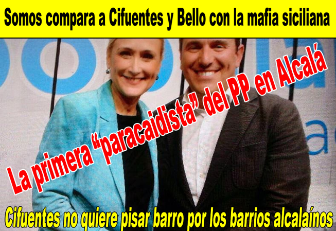 AlcaláDigital.- “No, no se trata de un fotograma de una película siciliana. La imagen muestra al @ppdealcala haciendo campaña. #Casta”. Con esta explicita definición resumía ayer en una red social, Somos Alcalá, la visita de campaña electoral que realizo al centro de la ciudad, la candidata a la Comunidad de Madrid, por el PP, Cristina Cifuentes.